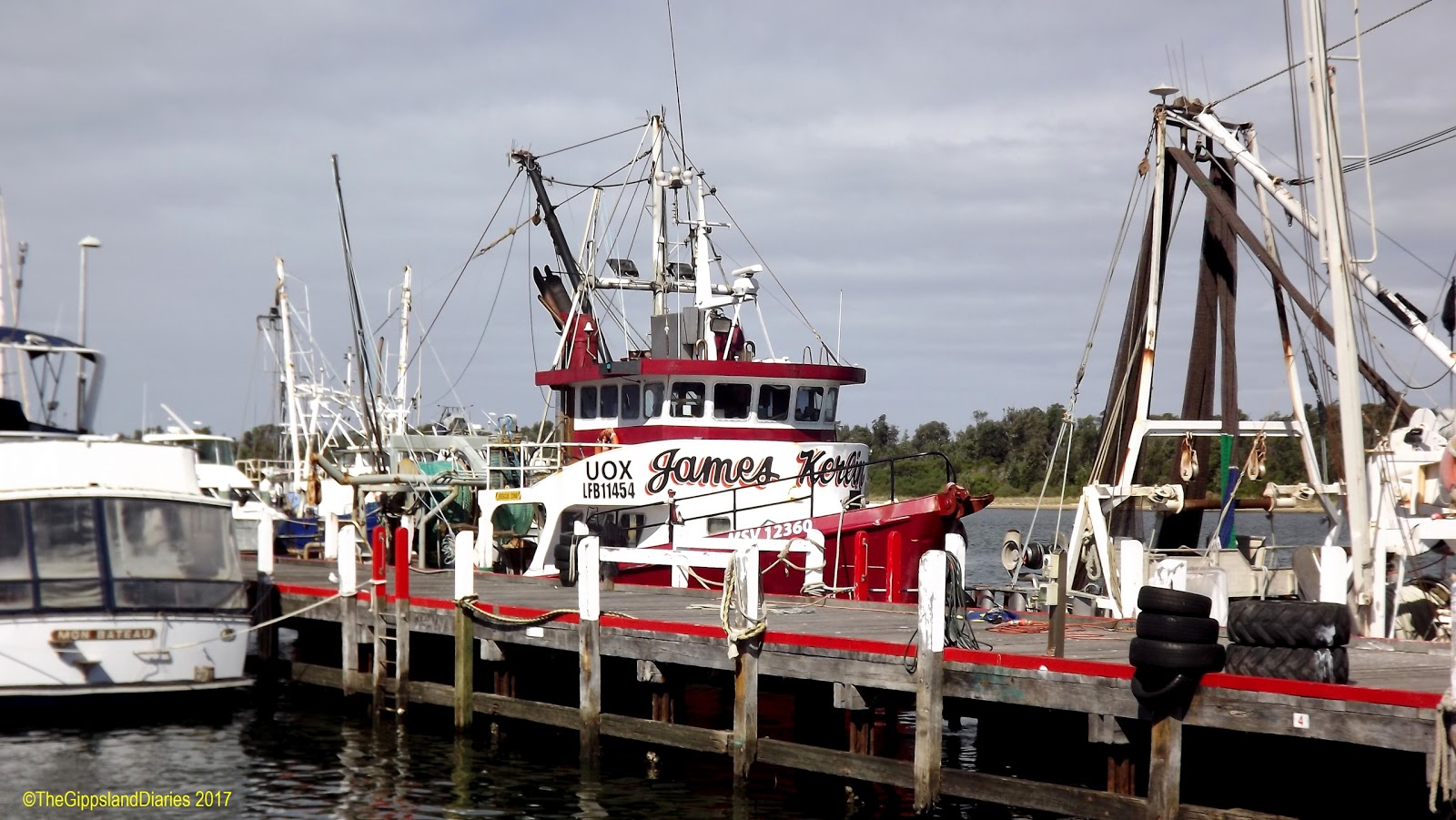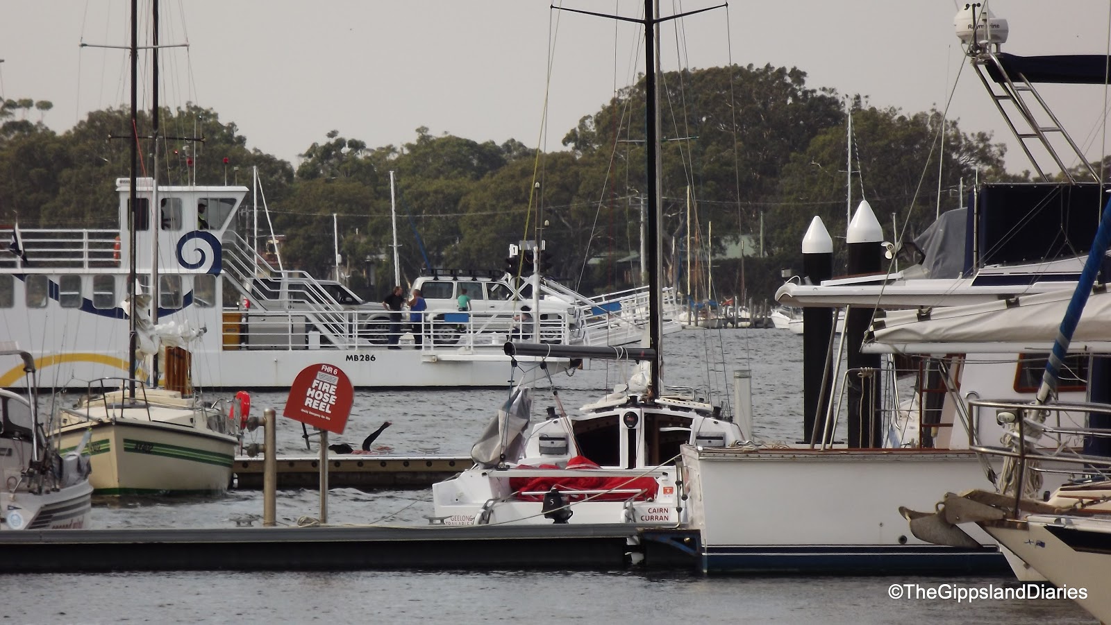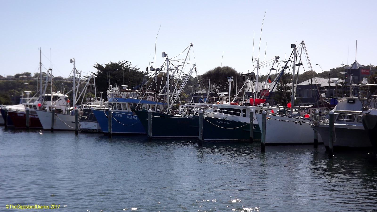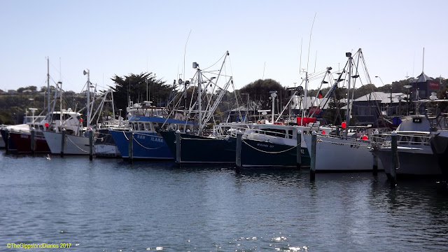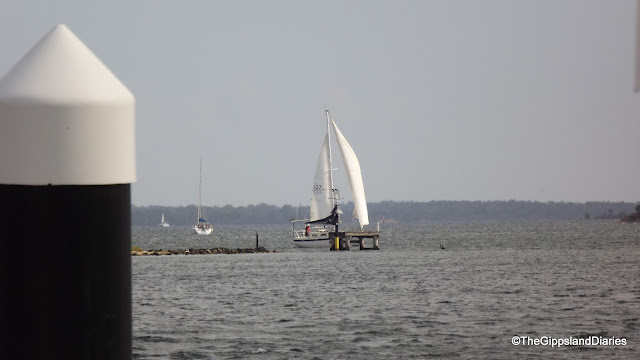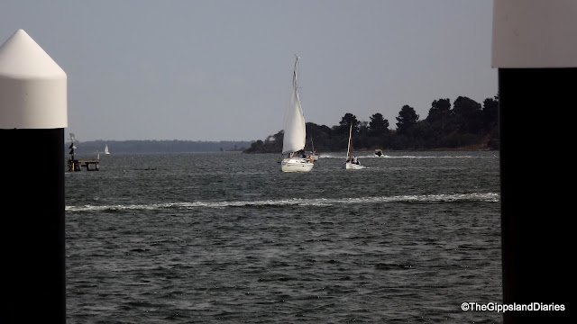 The mountains are fabulous – their peaks adorned with gum trees silhouetted against a blue sky with white puffy clouds lazily drifting by. In the valleys, streams can be seen glistening through the trees, with the occasional glimpse of a rock strewn river bed, as the Tambo winds it way along the side of the road. Cattle and sheep can be seen in their wonderfully green and lush paddocks, some grazing, others lying down in the shade of the gums, or drinking from the streams. The trees have not yet begun to turn on their brilliant color display for Autumn, with only a suggestion of color on a few, most are still varying shades of green.